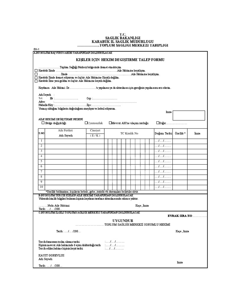 kopya aile hekim degistirme formu pdf